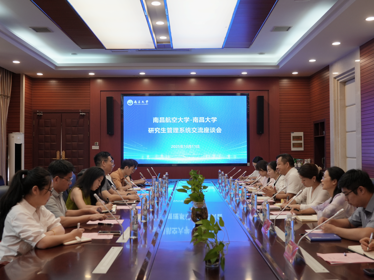 10月11日,南昌航空大学研究生院院长郑海忠、研工部部长牛馨一行来我校交流研究生管理系统建设工作。我校研究生院副院长王珺主持会议。