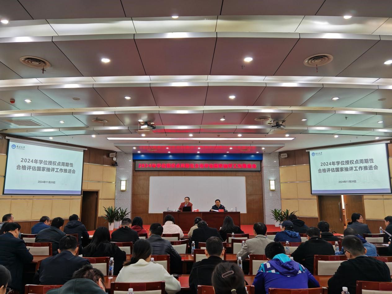 11月20日上午,学校组织召开2024年学位授权点周期性合格评估国家抽评工作推进会,副校长涂宗财出席会议并讲话,研究生院副院长况海斌主持会议。