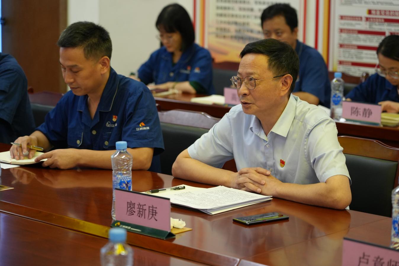 廖新庚对南昌大学一行的到来表示热烈欢迎,他指出,双方自签署战略合作协议以来,校企合作不断深化,联学形式丰富多彩,双方要持续拓展合作、交流领域,要坚持创新驱动,携手打造高水平人才培养体系;要强化使命担当,共同助力国家和区域创新体系建设;要服务区域发展,共同推动高质量跨越式发展。他强调,全面深化校企合作,推动研究生培养高质量发展是一项系统工程,需要双方长期不懈的努力,期待与南昌大学建立更加紧密的合作关系,共同探索产教融合、科教协同的新模式、新路径,为江西铜产业、高等教育以及经济社会发展作出更大贡献。
