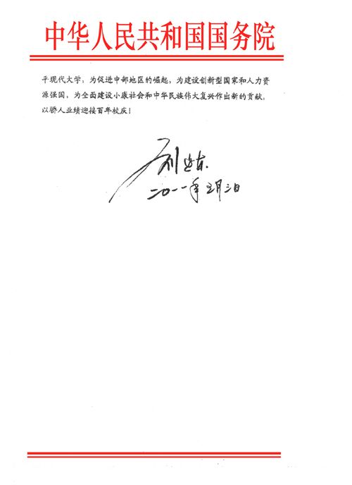 5月3日,中共中央政治局委员、国务委员刘延东同志专门为我校九十华诞发来贺信。贺信原文如下: