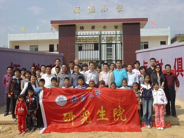 2009年10月18日早晨7:00,研究生院常务副院长张宁教授和院党委书记彭迪云教授率领全院党员带上为孩子们买的文具、体育用品赴鄱阳县杨源小学开展对口帮扶活动。察看了对口帮扶项目:学校校门、围墙、主干道路铺水泥等建设情况,漂亮的校门、坚固的围墙和平整的水泥路面有效地保障了学生安全也为孩子们营造了良好的学习环境。接着研究生院全体党员干部与部分贫困学生进行了座谈和交流,学院党员一致认为要把扶贫工作继续做实做好,今后还再以个人名义每位党员对口帮扶1~2名贫困优秀学生上学,以保证更多贫困优秀学生能继续求学梦想。