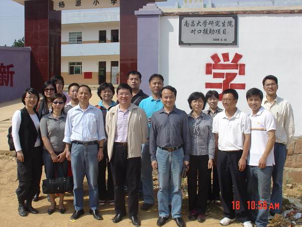 为了响应学校实施对口支援贫困县乡农村中小学第三期“结对帮扶工程”的号召,积极贯彻落实科学发展观,帮助贫困地区普及巩固义务教育,把结对帮扶工作落到实处,研究生院党政领导班子先于2009年5月深入鄱阳县凰岗镇杨源小学就对口帮扶工作进行调研,并结合小学实际就帮扶的具体内容达成了共识,决定帮扶的项目是:建设学校校门、围墙、主干道路铺水泥和捐赠部分办公用品及体育用品,帮扶项目随后很快就予以了落实实施。